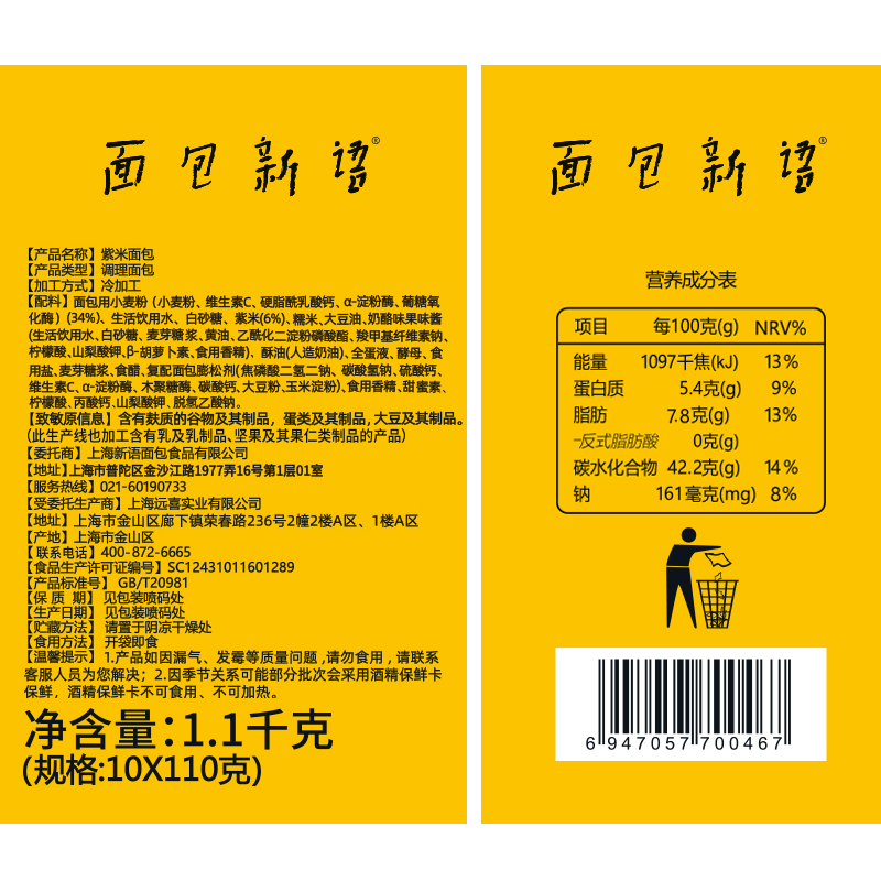 Purple rice bread 1100g (one box of 10 packs) Shanghai delivery, mind those who are careful to shoot short-term products, after shipment is not recommended to return without reason During the epidemic period, logistics is unstable, please understand