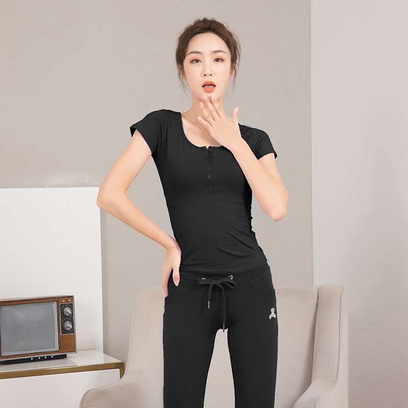 Sports and leisure suit women's summer 2022 new thin section fashion trend foreign style black pants two-piece suit
