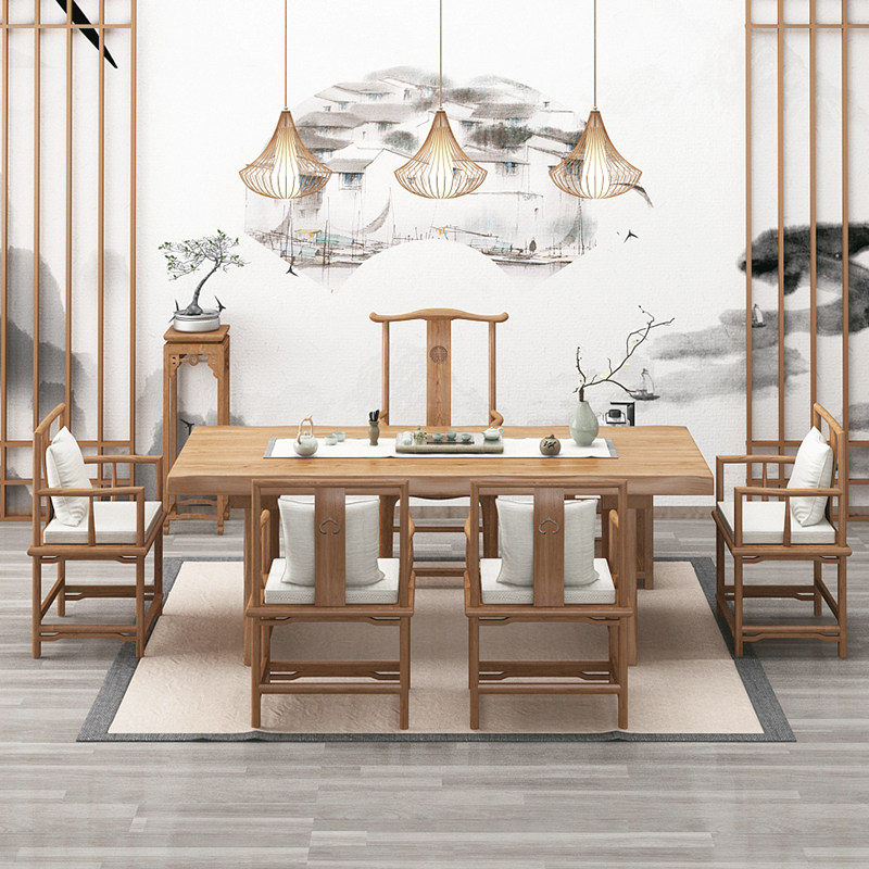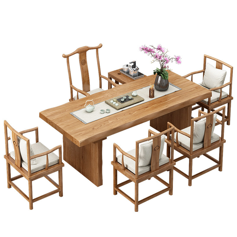 Full Solid Wood Large Plate Tea Table And Chairs Combination Brief Modern Home Office Tea Desk New Chinese Meditation Kung Fu Tea
