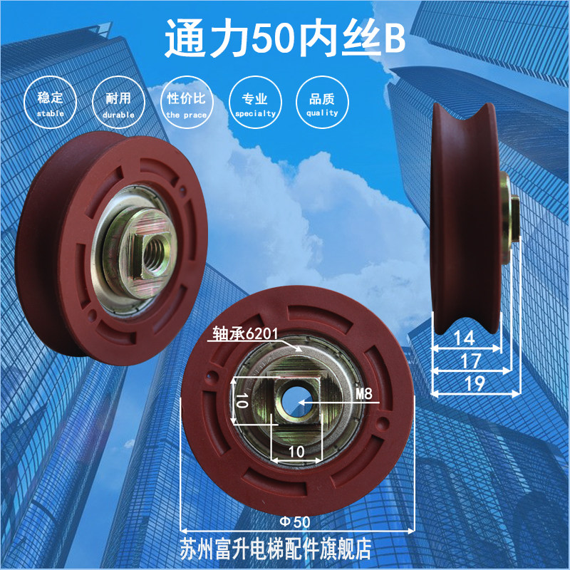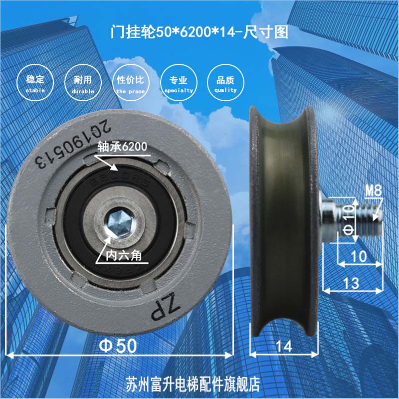 Elevator hall door car door door hanging wheel outer diameter 50 bearing 6200 screw M8 thickness 14 spot consumer protection crown