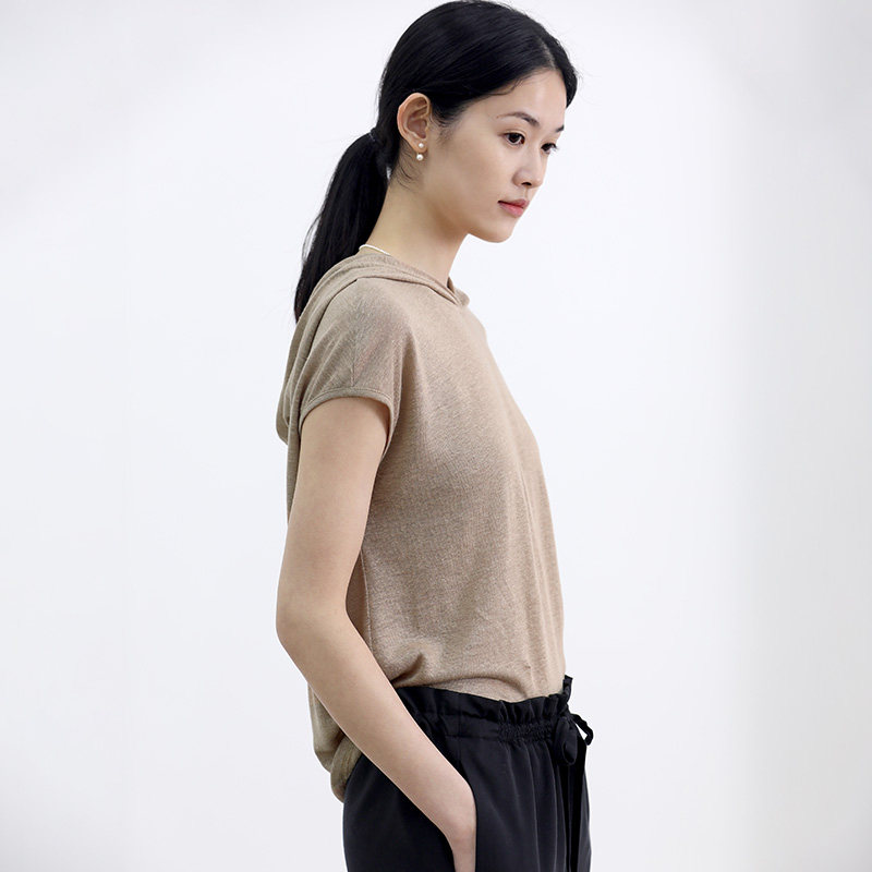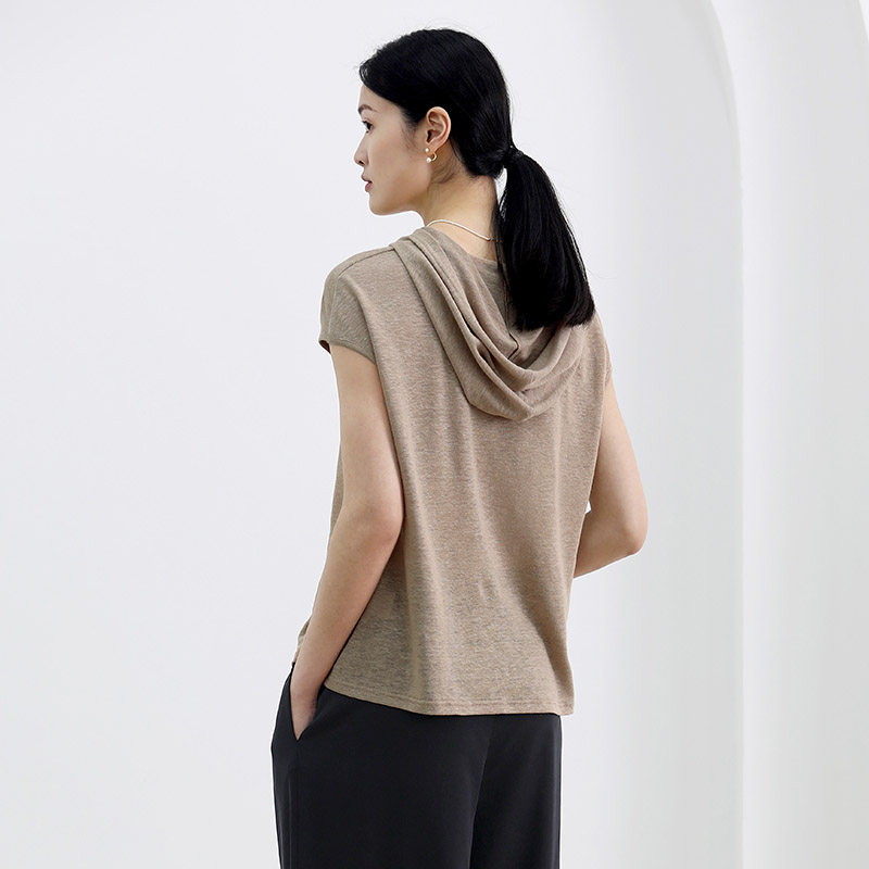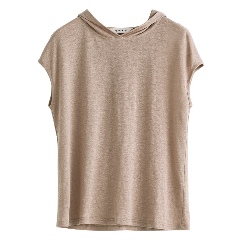Monastery Mountain Wen also wood Linen Knit linen knit Lianhood hooded sweatshirt Simplicity Casual Short Sleeve Pure Color 100 Hitch Blouse Summer Lady