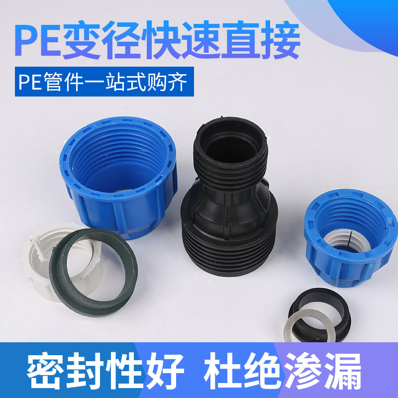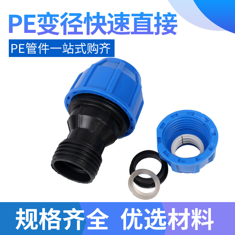 PE water pipe blue cap thickened size head 20~63 heat-free different diameter straight through variable diameter quick connection live connection direct quick connection
