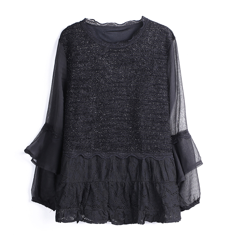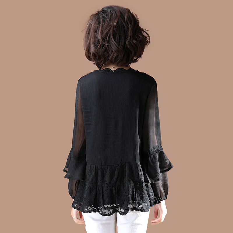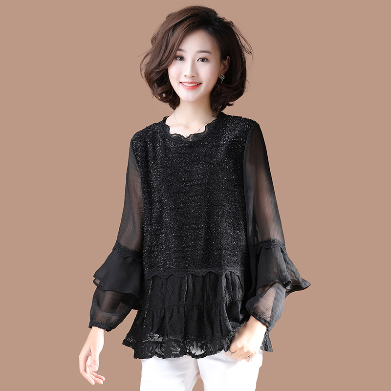 Large size women's dress 2022 spring and autumn chubby sister mm lace snowspun long sleeve blouse for women's belly shirt foreign pie