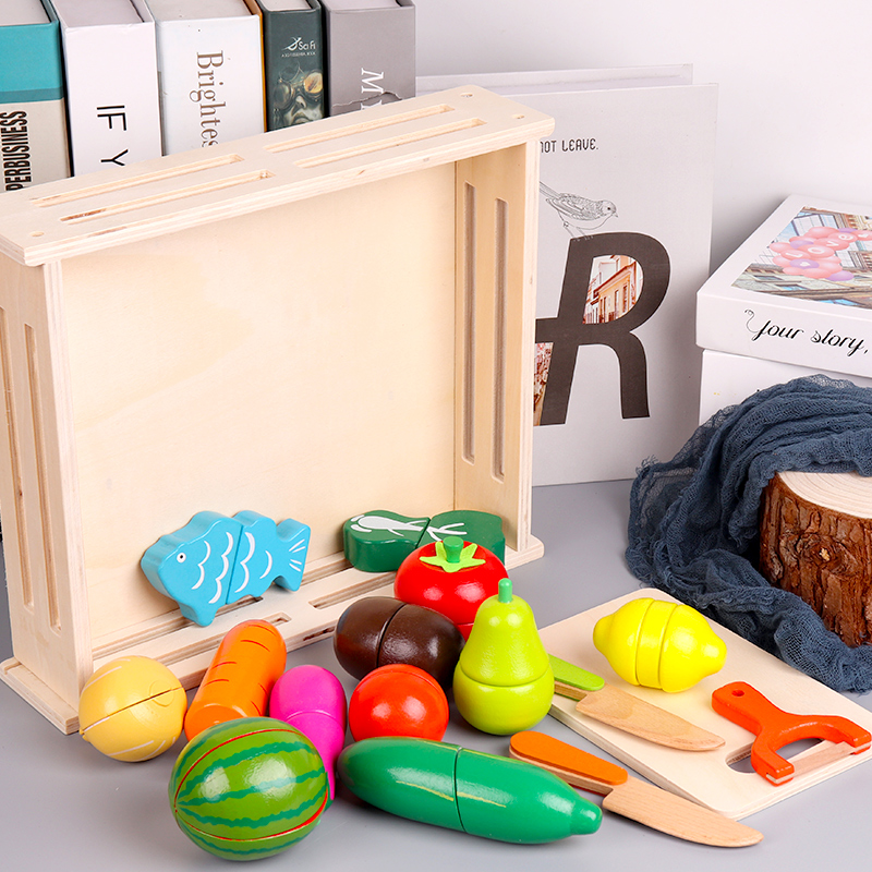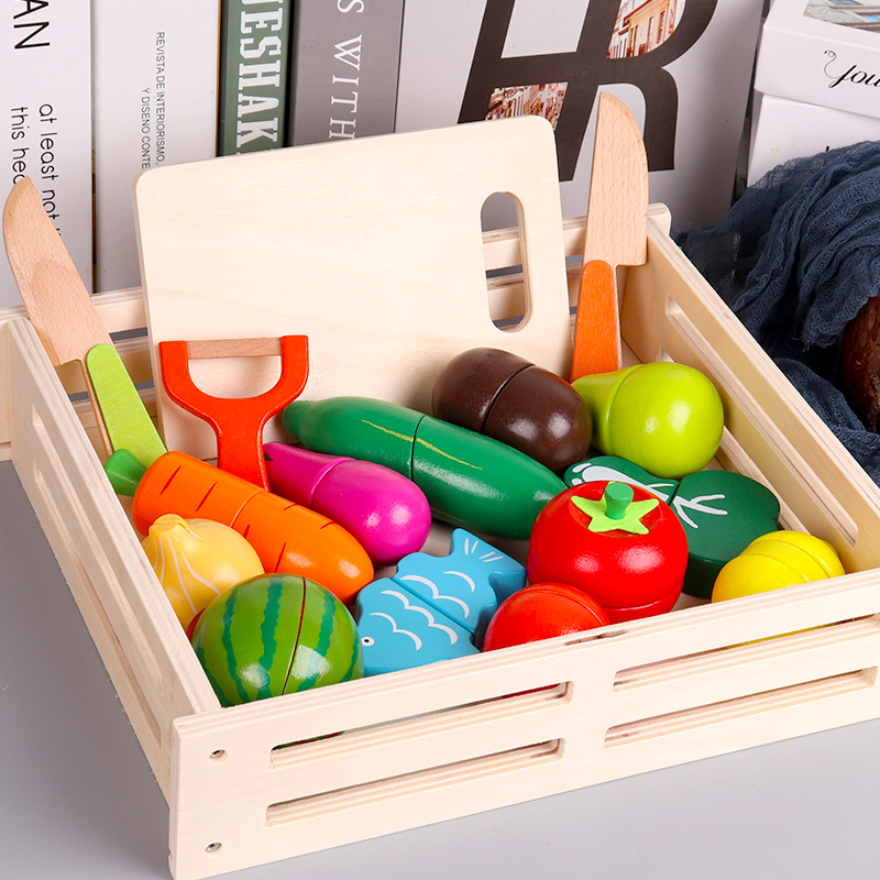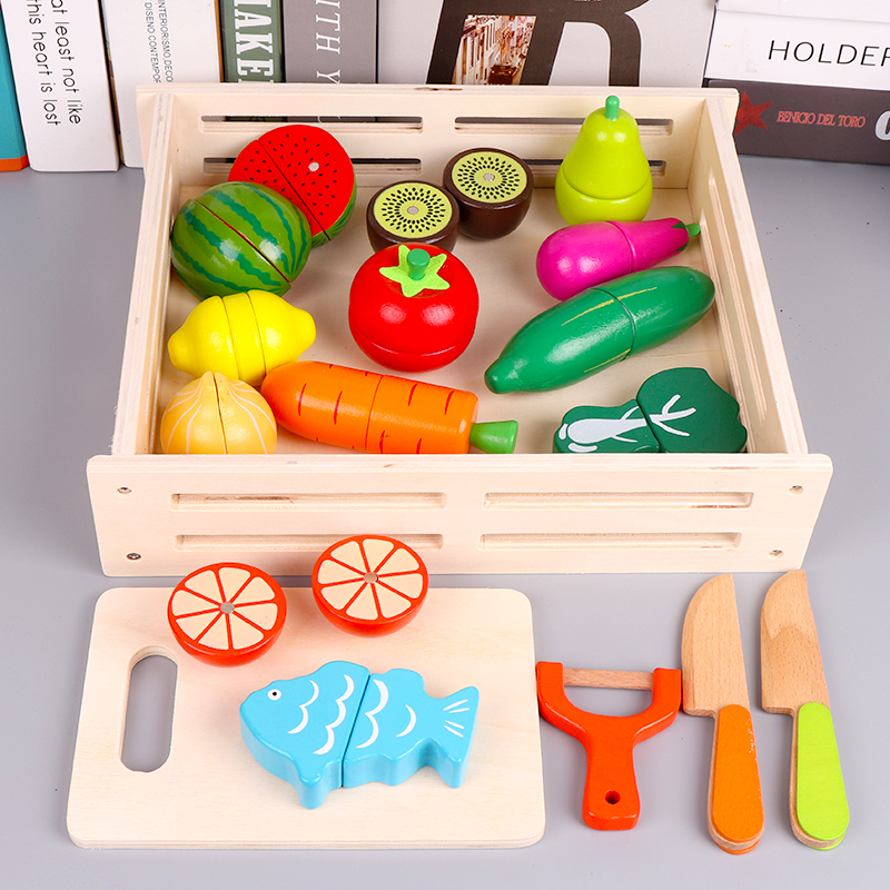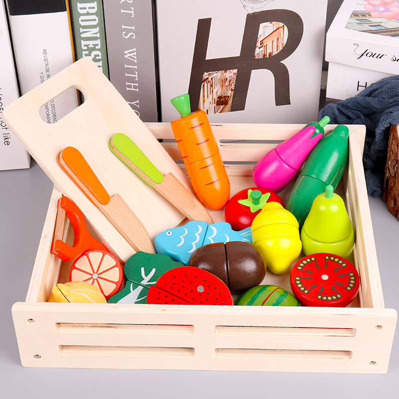 Wooden frame 17-piece fruit and vegetable cut (magnet) portable box 12-piece fruit and vegetable cut (magnet) barrel 13-piece fruit and vegetable cut (hook) wooden box 10-piece fruit