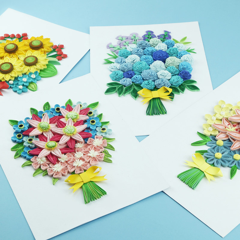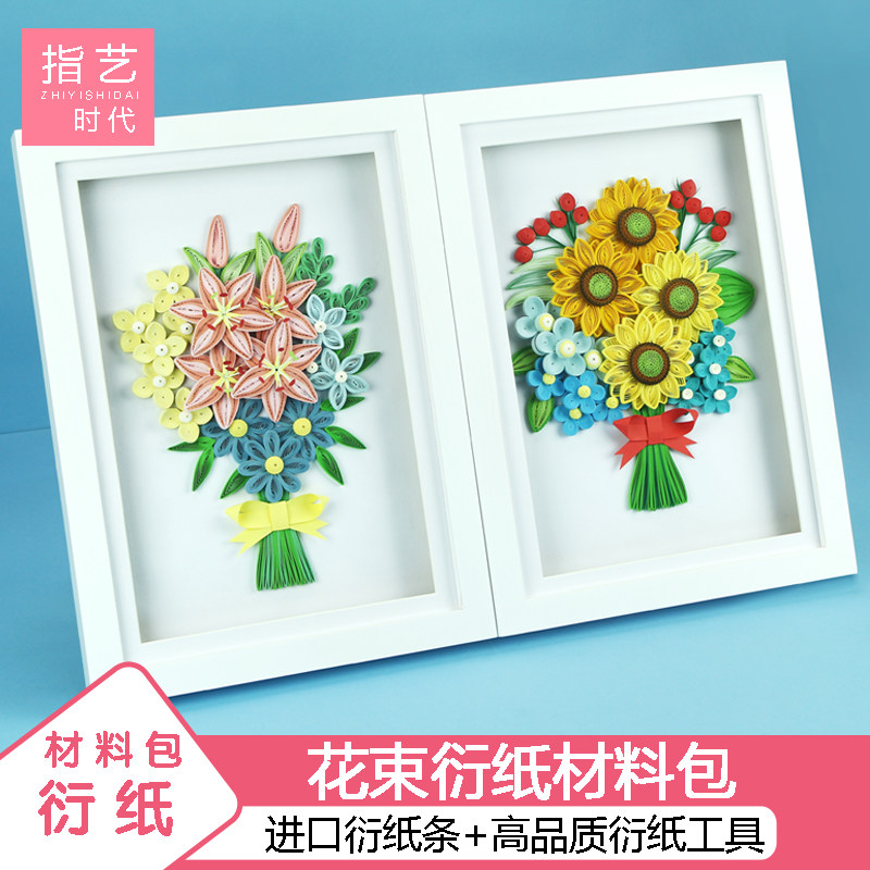Finger Art Era Bouquet Series Roll Paper Material Bag Suit Sunflower Lily Blue Rose Iron Wire Lotus Artisanal Diy Living Room Painting A4 Tool Suit Line Manuscript Drawing Student Gift Activity