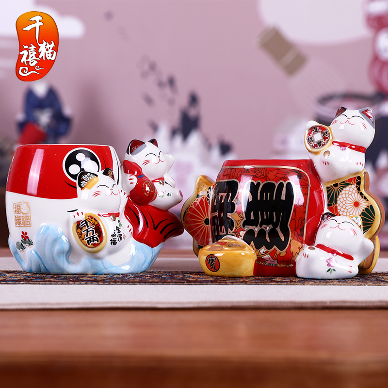 Millennium cat pen holder Lucky cat cute creative fashion Chinese style office study decorative ceramic desktop ornaments