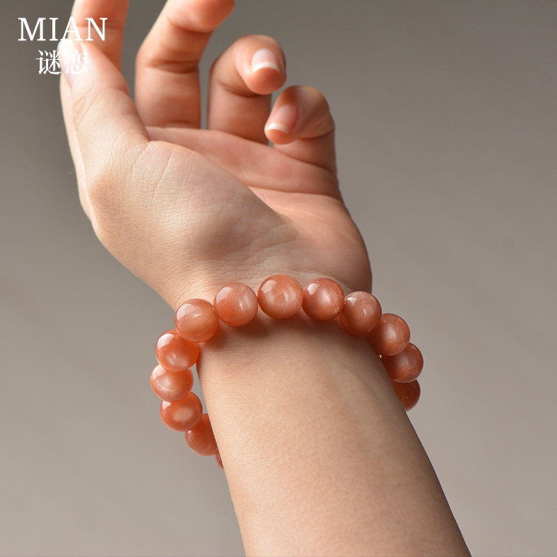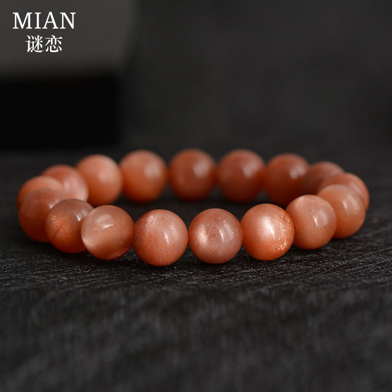 Mystery Natural Sun Stone Orange Moonstone Crystal Sculpture Female Sands Cat's Eye Sunstone Bracelet Lucky Fortune