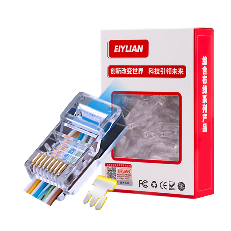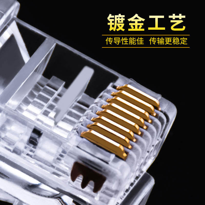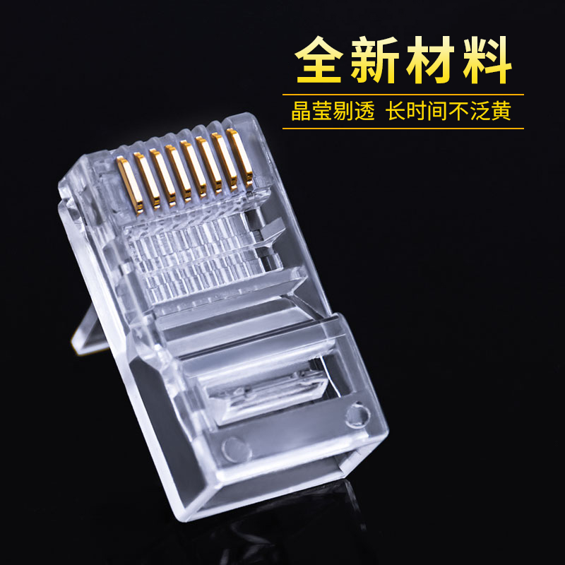 RJ45 perforated ultra five categories of six types of internet crystal heads non-shielded mesh routes through holes pure copper gilded crystal heads 8P8C