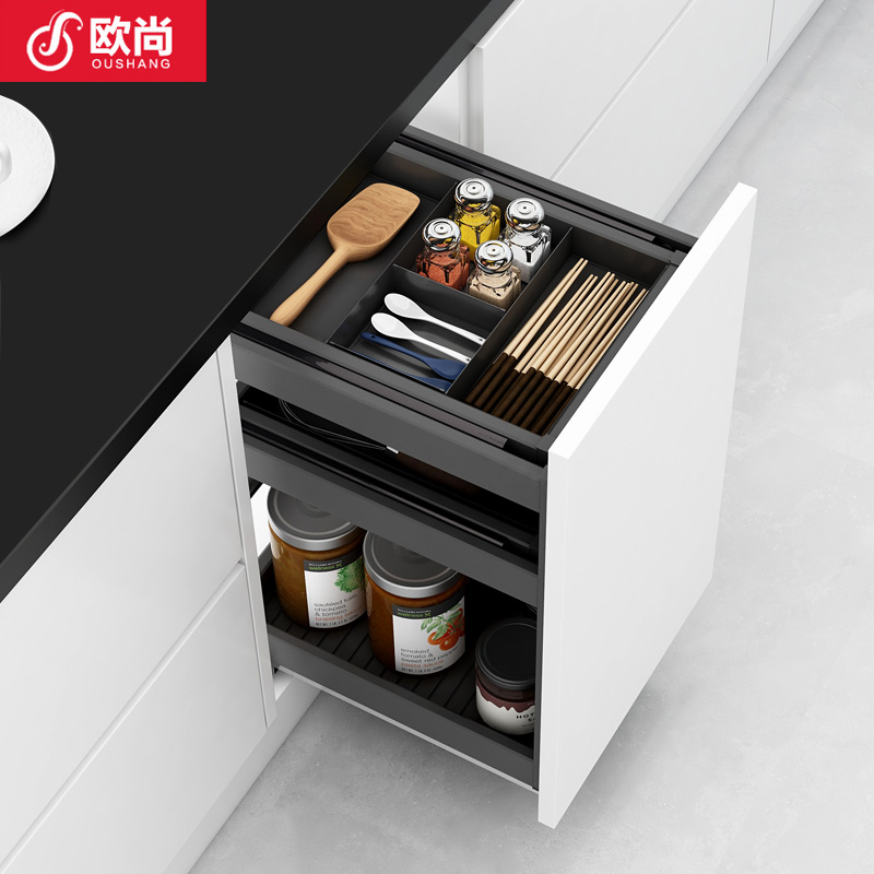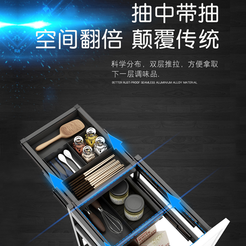 Kitchen overall cabinet extraction extraction flavor pull basket Space aluminum drawer cabinet Built-in shelf Damping buffer vertical pull basket