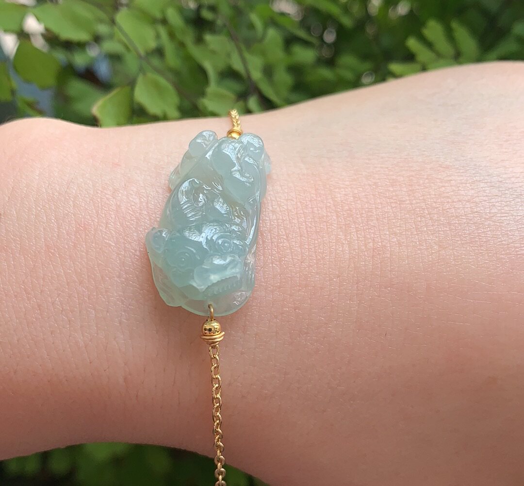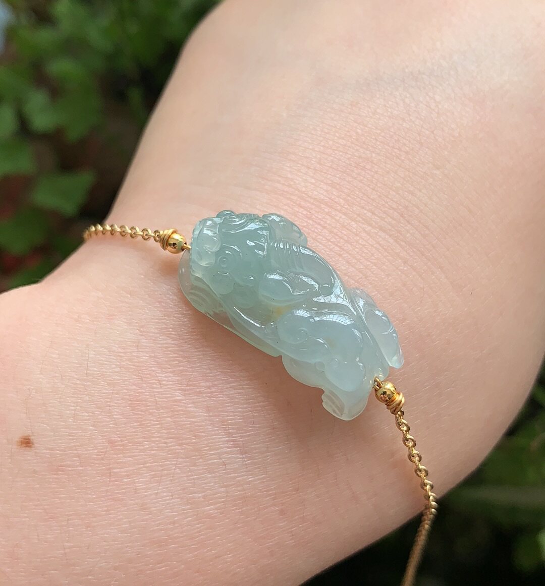 Yang Yujia Myanmar Natural A Goods Jadeite Blue Bottom Sprinkled Gold Ruyi Pixiu 14K Gold Hand Chilling Certificate
