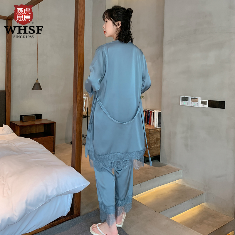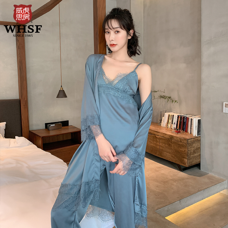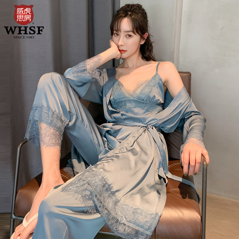 Sleepwear Woman Summer Ice Silk Three Sets Sexy Harnesses Spring Autumn Style Long Sleeves Women Spice Clothing Fire Hot Morning Gown Home Clothes