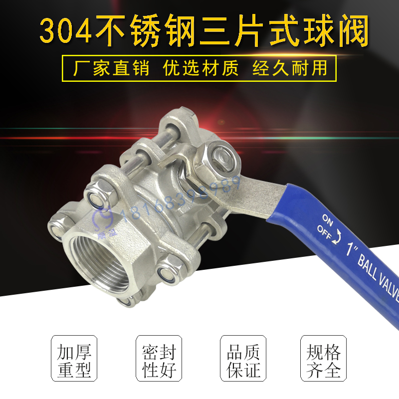304 stainless steel three-piece ball valve thread buckle teeth three-stage high temperature pneumatic valve DN15 20 25 40 50