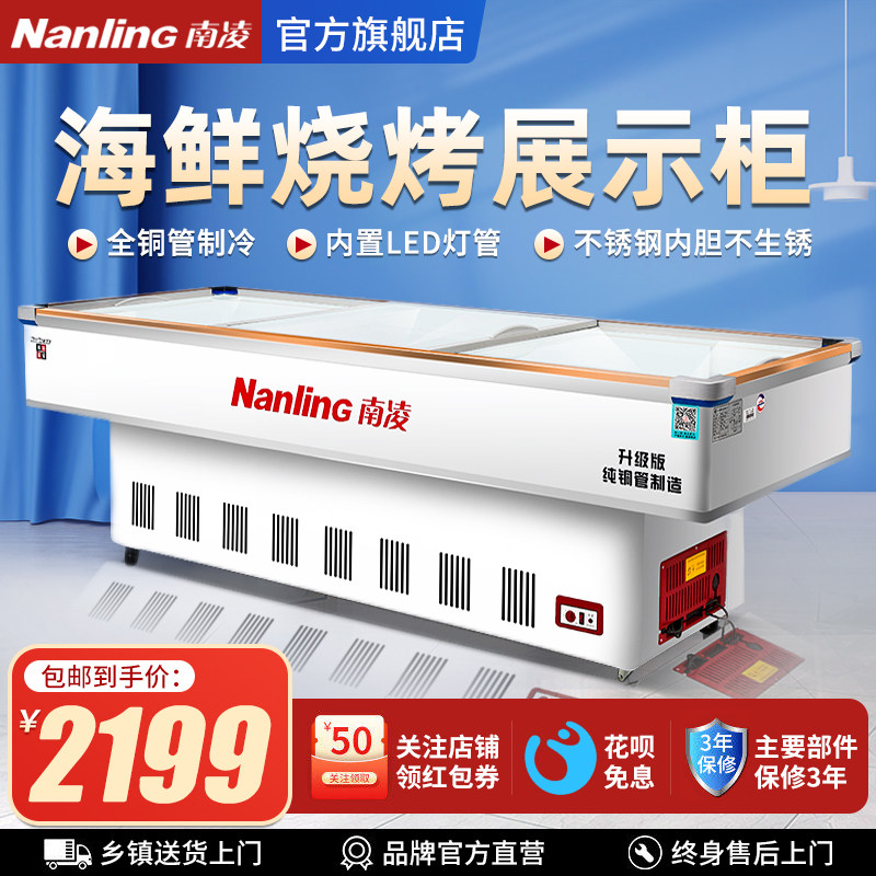 South Ling Ice Cabinet Horizontal Commercial Frozen Seafood Cabinet Barbecue Large Capacity Refrigerated Display Cabinet Fruit Bailing Preservation Cabinet