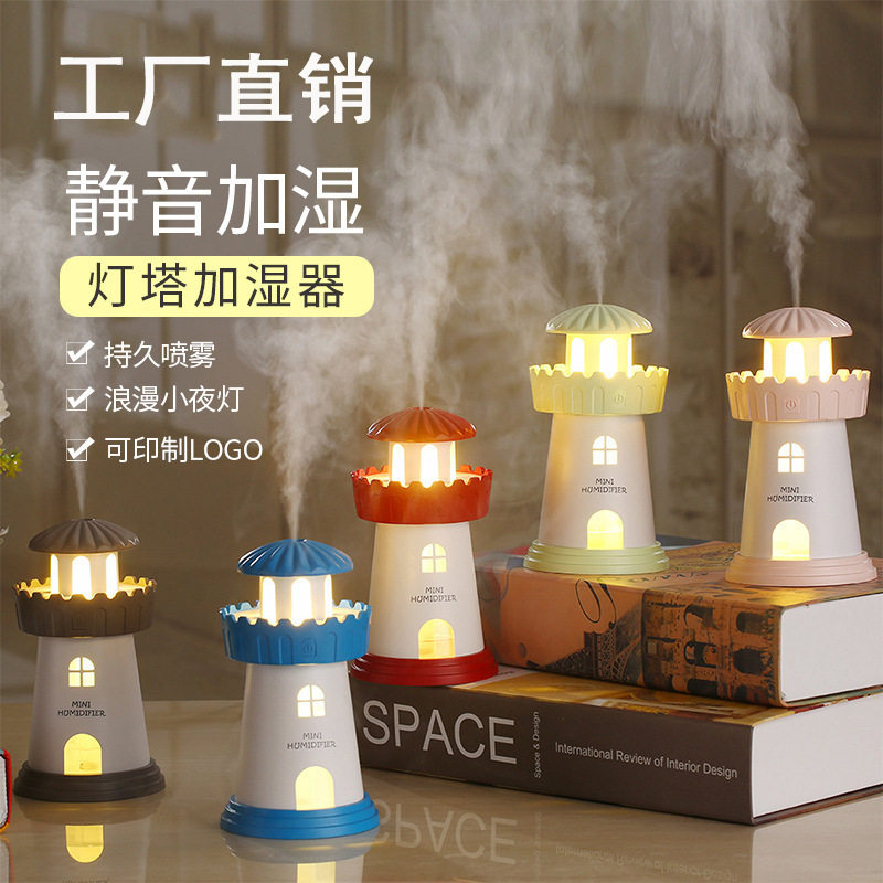 usb mini lighthouse humidifier household office dorm silent fog charge convenient birthday gift