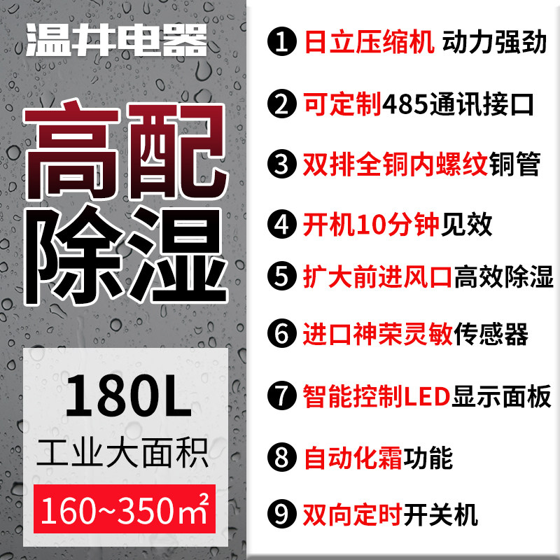 Wet Well Industrial Dehumidifier 180L High Power Workshop Warehouse Dehumidifier Wet well basement garage dehumidifier