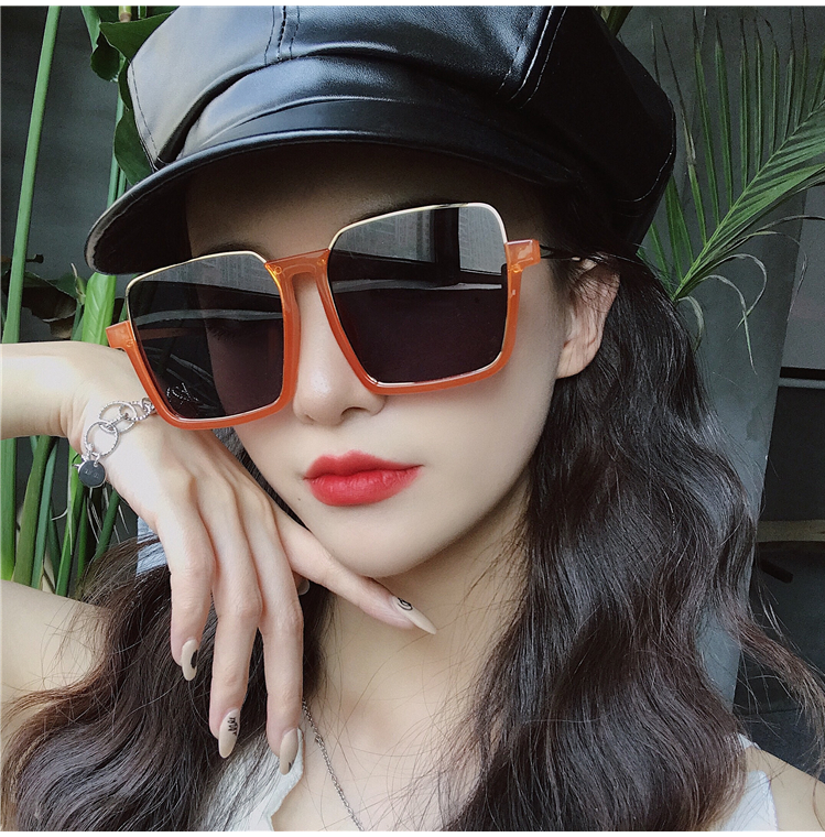 Large box bottom half box Korean version of sunglasses flat mirror can be worthy of myopia large face Thin Fashion Tide Orange personality woman