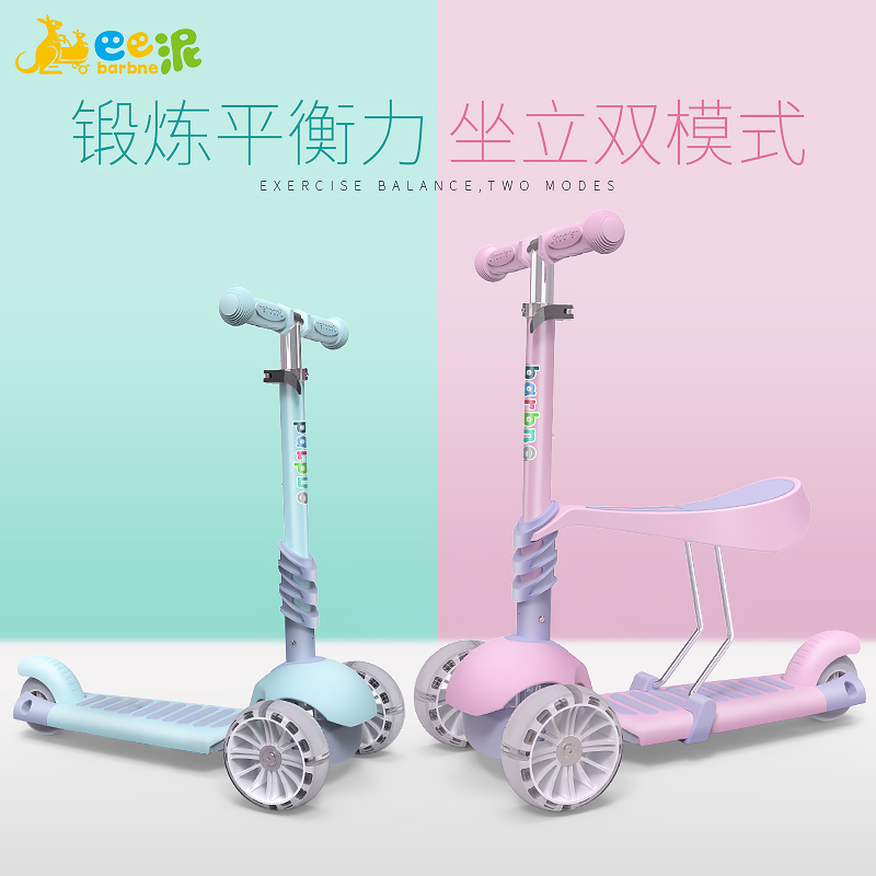 Baba Clay Children Skateboard Trolley Ride of the Divine Instrumental 2-8-year-old Light Pushable Seat Flash Three-wheeled Scooter