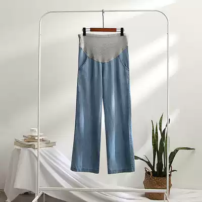Pregnant women Tencel denim pants spring and summer thin wide-legged straight trousers loose casual nine-point summer wear large size