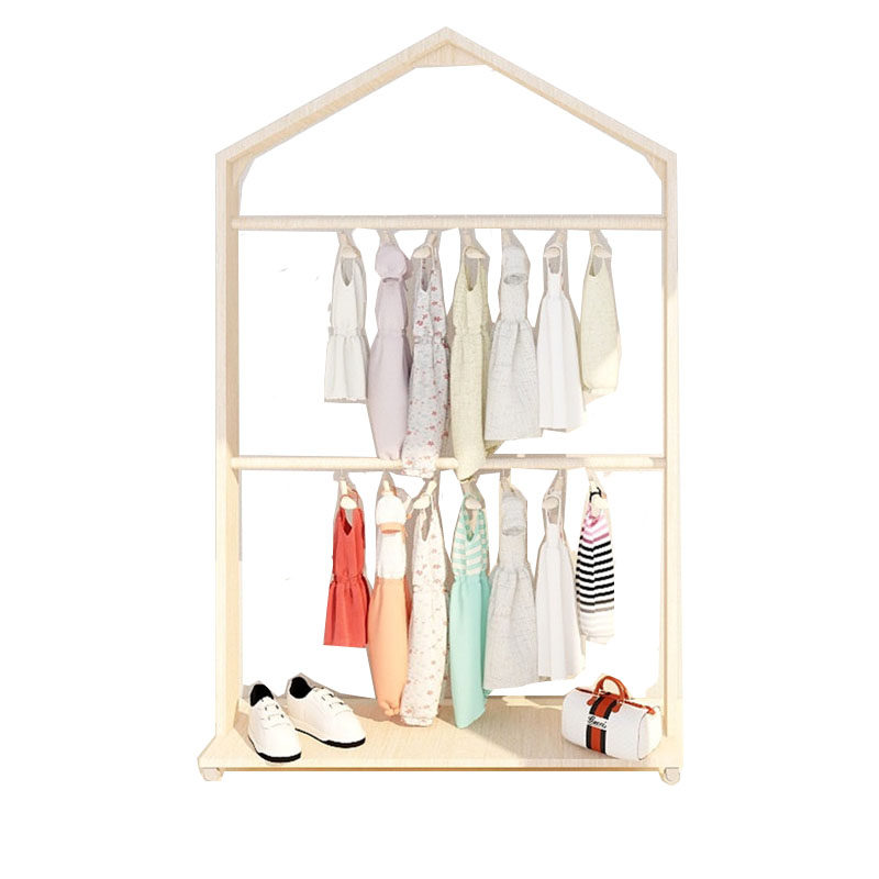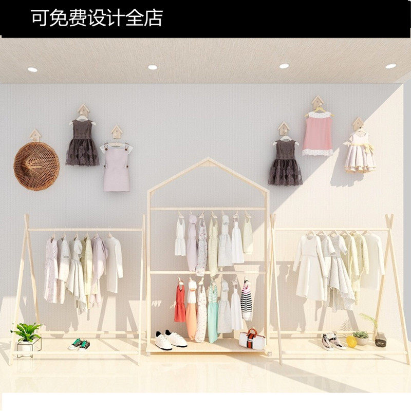 Clothing Store Children's Clothing Display Show Brief Nordic Wind Children's Clothing Store Double Floor Type Solid Wood Display Rack Hung Hanger