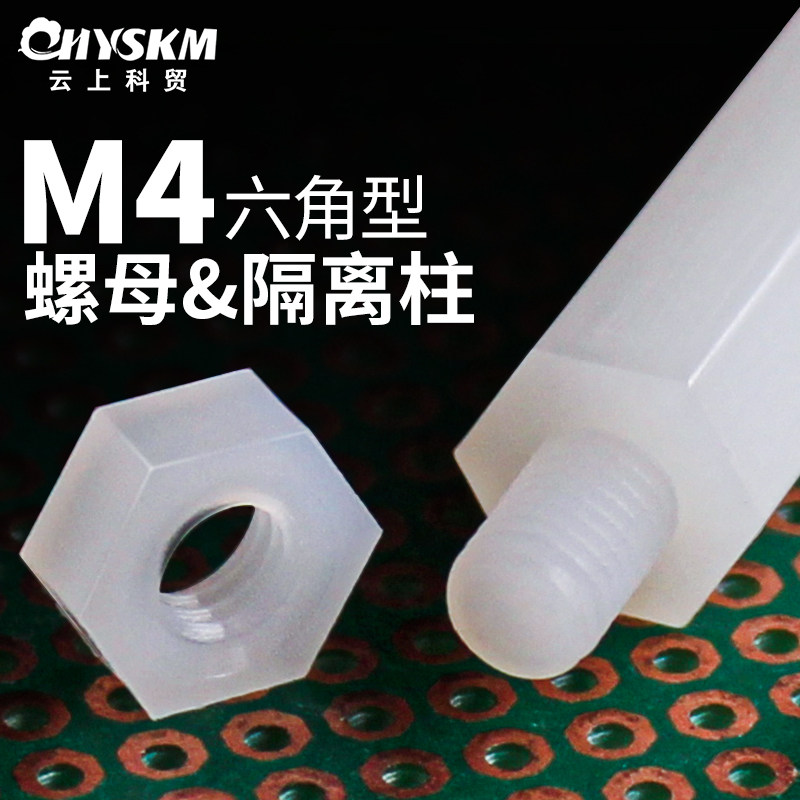 Nylon M4 hexagon single through stud with internal thread support column box spacer column nut column plastic PC board isolator column