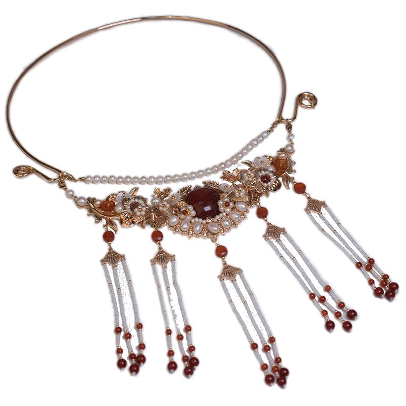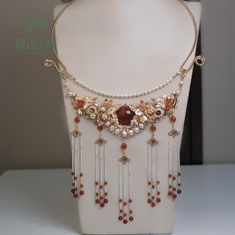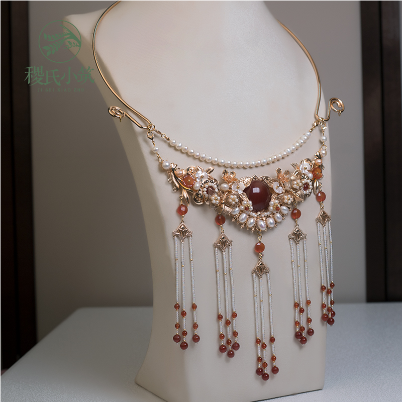 Ji's small building tears red clouds with gratitude for original comeback vintage Wind red Manau necklace Handmade to the ring