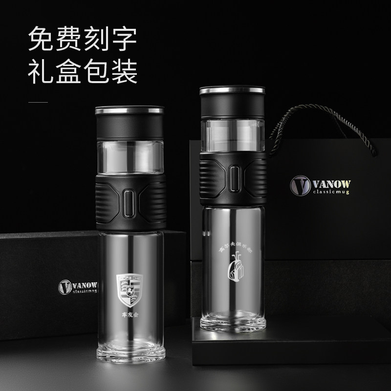 UK Vanów tea water separation tea cup double glass cup male and female upscale portable thermal insulation transparent water glass