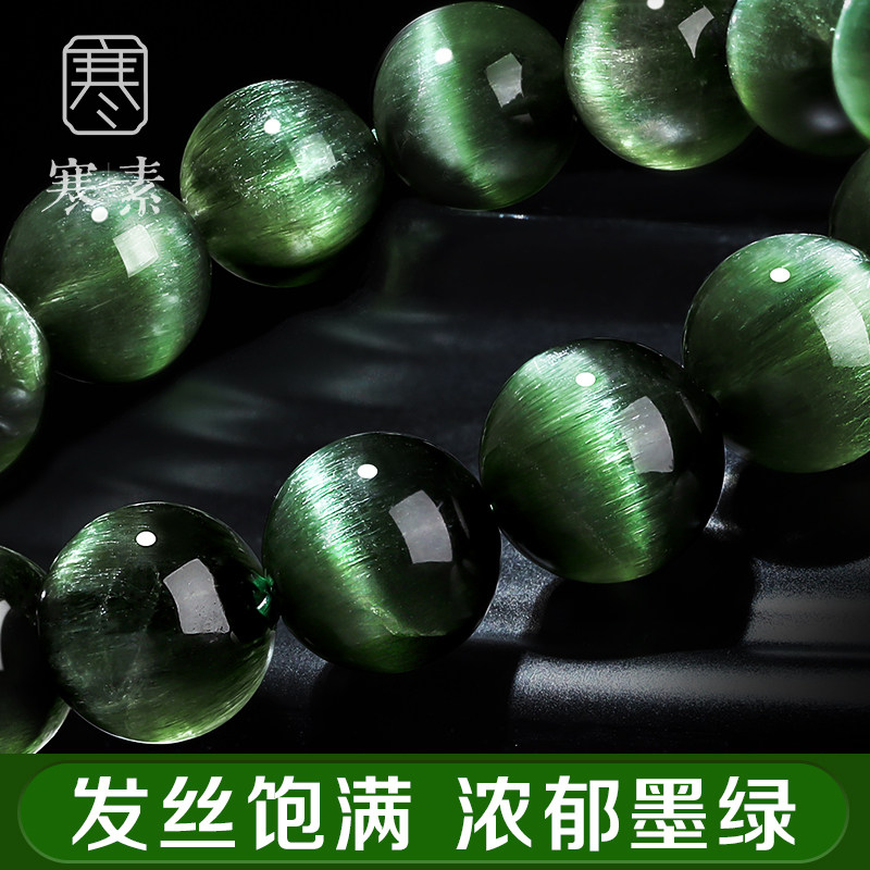 Cold Vegetarian Natural Collection Grade Green Hair Crystal Handmade Woman Full Hair with a Cat Eye Natural Crystal