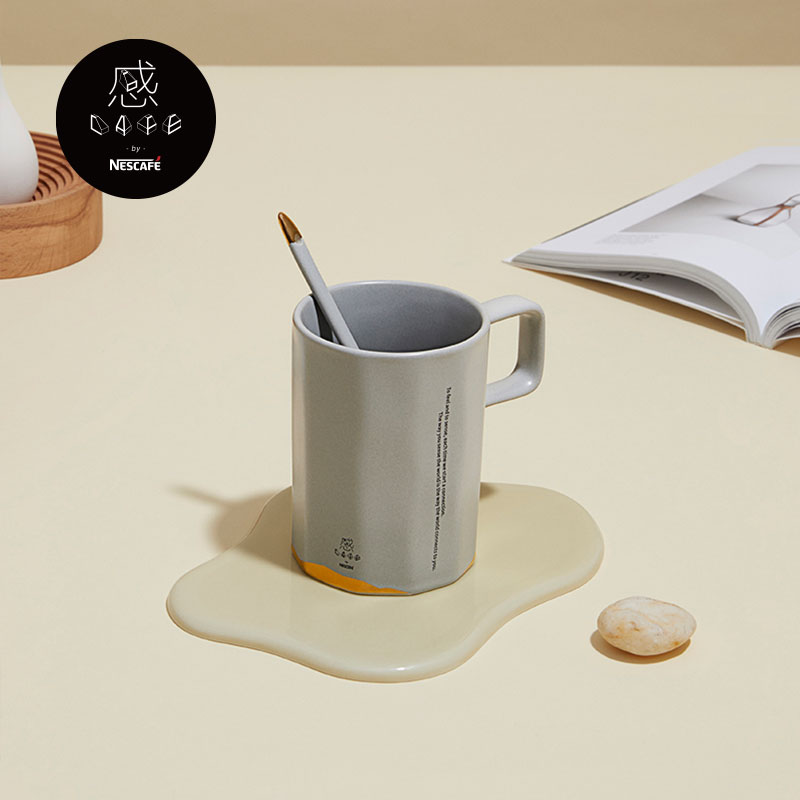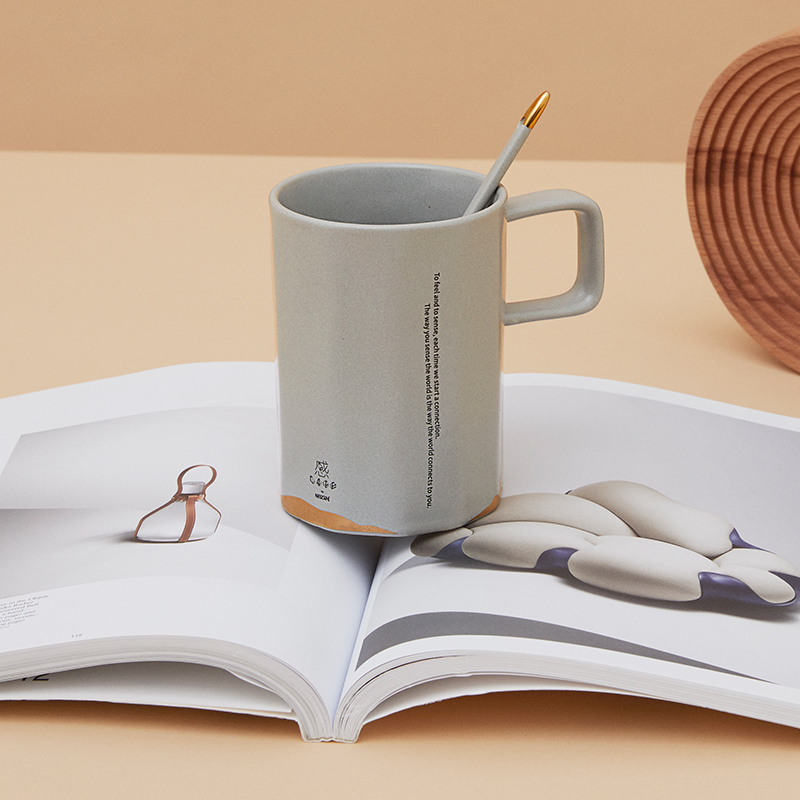 Sense CAFE 330ml Morandi Mark Cup Set Ceramic Coffee Cup With Spoon Minima Cup Gem Grey