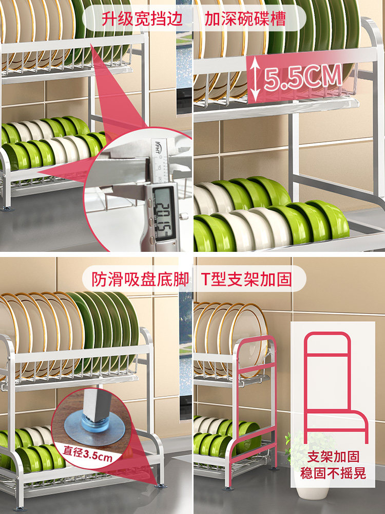 Kitchen rack 304 stainless steel dish storage rack three-layer dish drain rack tableware storage box