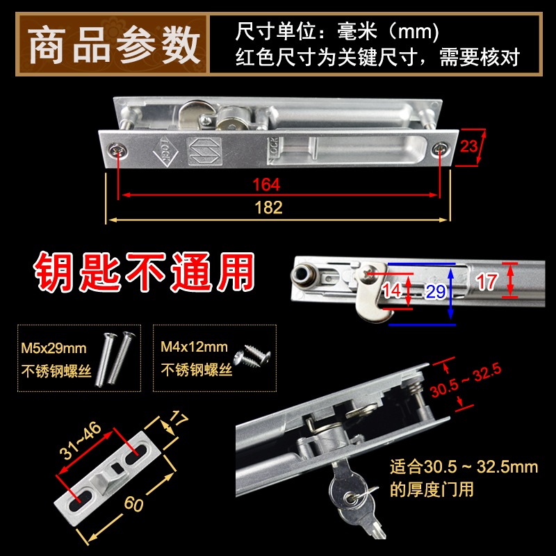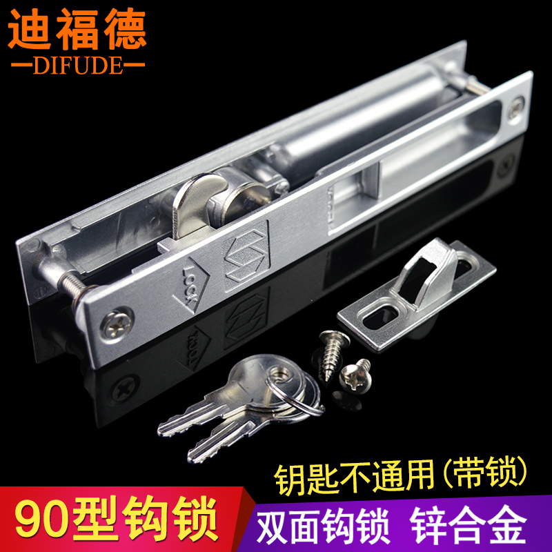 Deford 90 old-fashioned aluminum alloy door hook lock double-sided translation sliding door anti-theft lock buckle with key Hook Lock