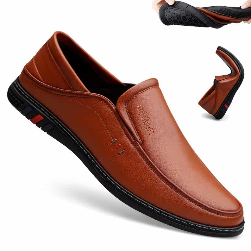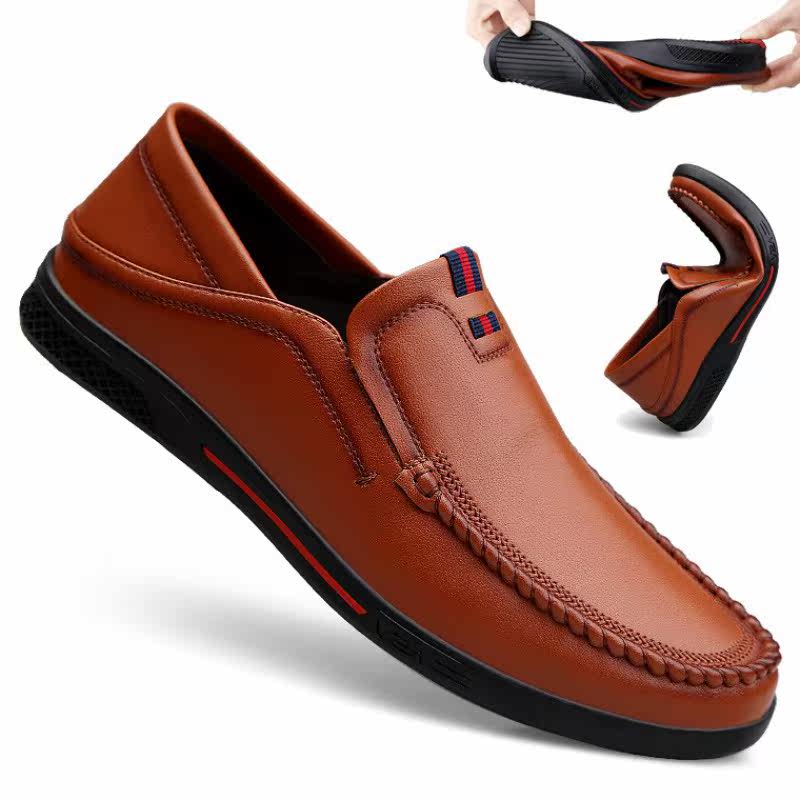 2020 Fall New Men's Casual Leather Leather Soft Face Leather 100 Hitch Men's Shoes A Foot foot Lazy Bean Bean Shoes man