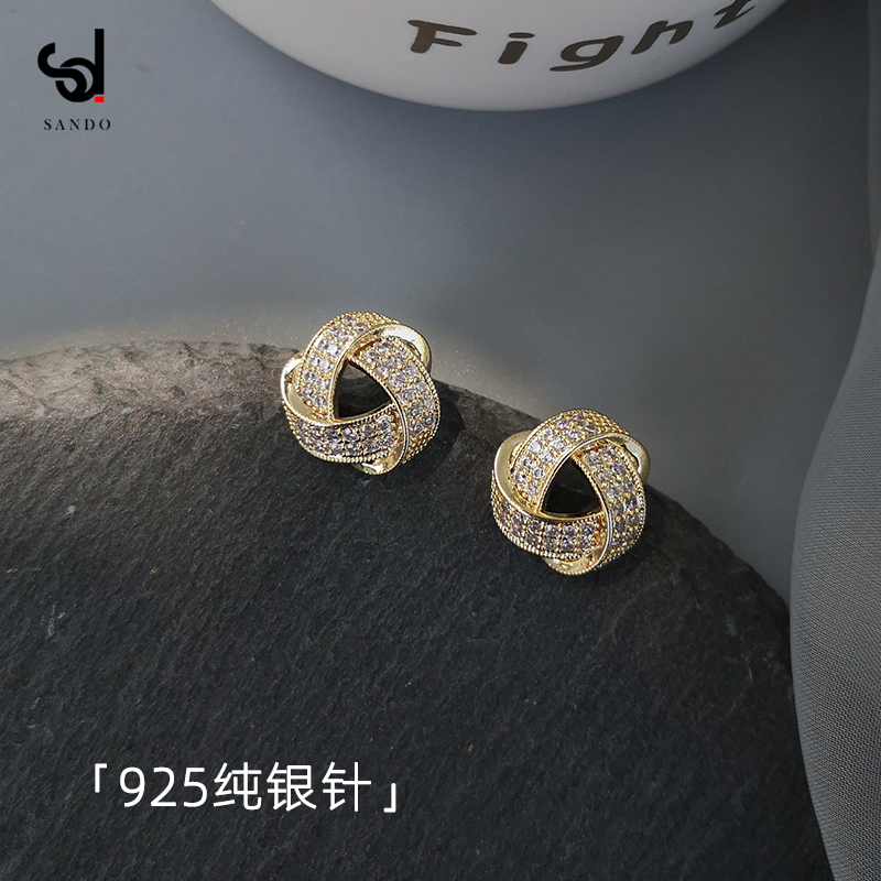 Xiaoxiang exquisite small diamond ear needle female sterling silver needle personality Korean temperament earrings simple cold wind high-end earrings