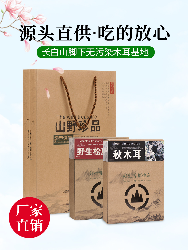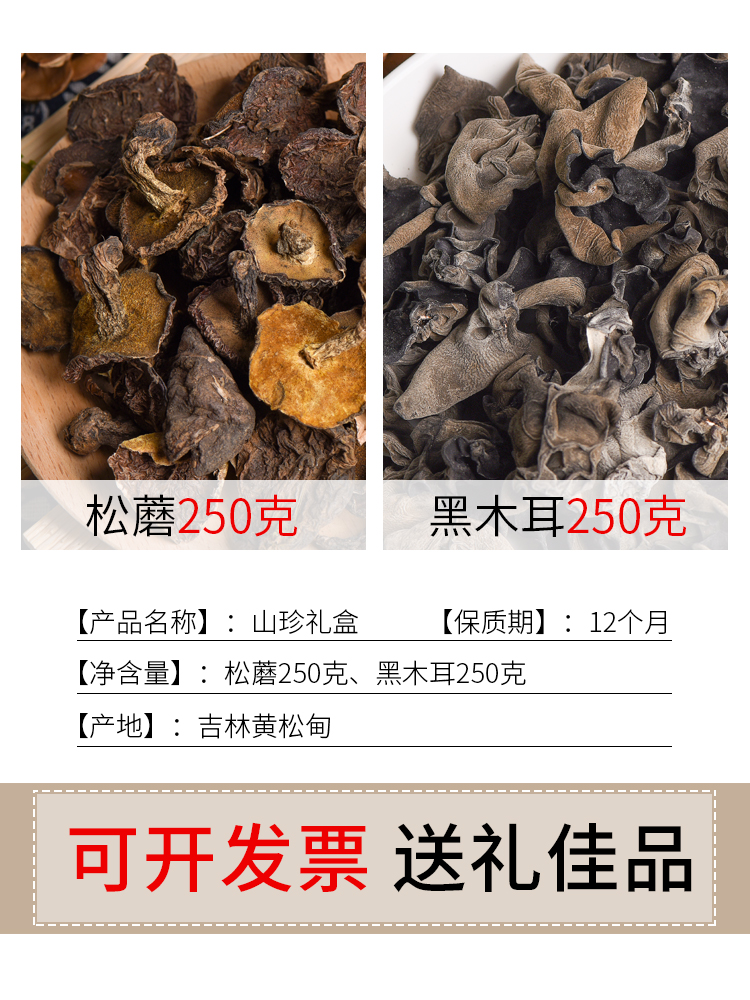 Northeast native mountain treasures North and South fungus Dry Goods gift box black fungus hazelnut mushroom season new dry mushroom 500g