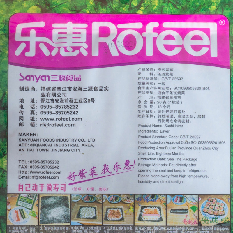 Lehui sushi Purple Vegetable 20g bagged blockbuster Sushi Sea Moss Purple Vegetable Slice Meal Bamboo Curtain Roll Sushi Special