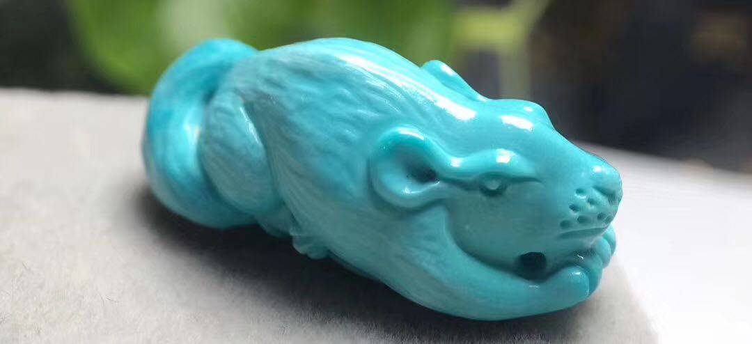 Natural Raw Ore High Porcelain Blue Turquoise Small Squirrel Pendant