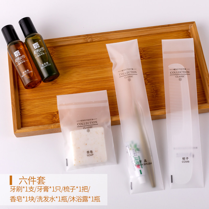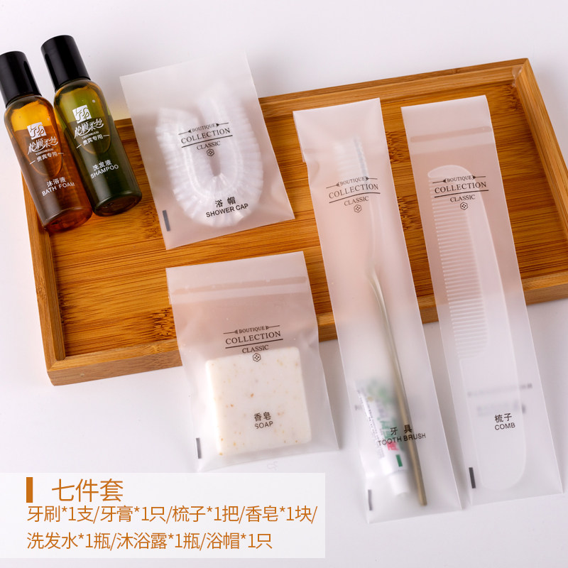 (100 sets)Toothbrush toothpaste (100pcs) Comb (100pcs) Soap (100 bottles) Shampoo (100 bottles) Shower gel (100pcs) Shower cap(100pcs) Shaving
