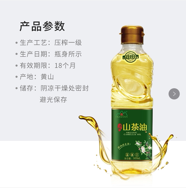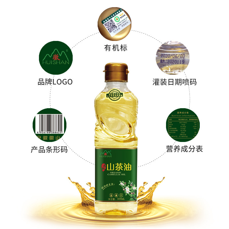 Huishan organic camellia oil edible 500ml bottle baby baby special wild pressed first-class tea seed oil skin care
