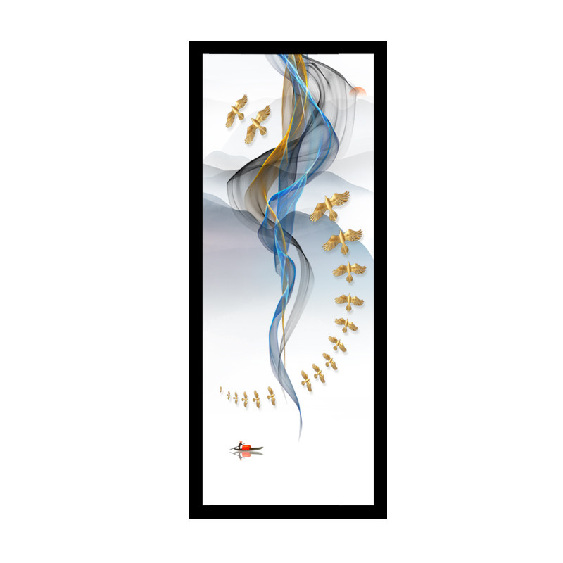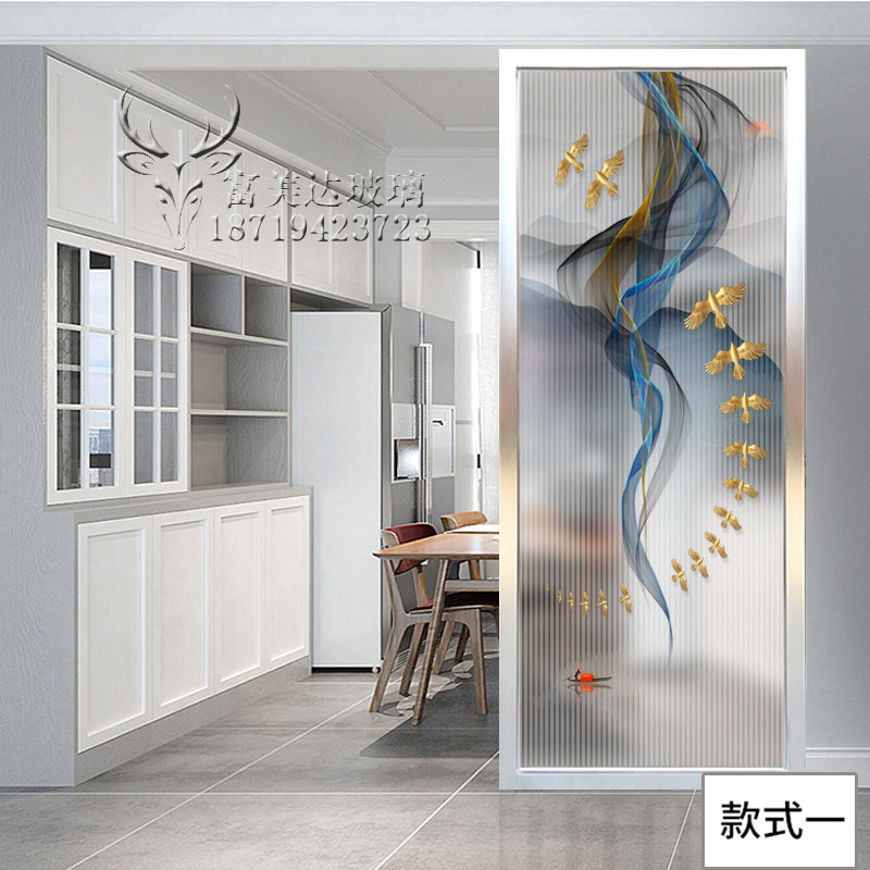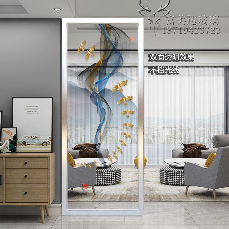 Light and luxurious double-sided steel frosted light transmission screen art glass partition Xuanguan cabinet New Chinese 3D Abstract landscape painting