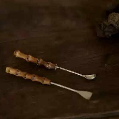 Xianyun Ya play handmade sterling silver tea ceremony entry tools bamboo root scented spoon spatula two-piece accessories