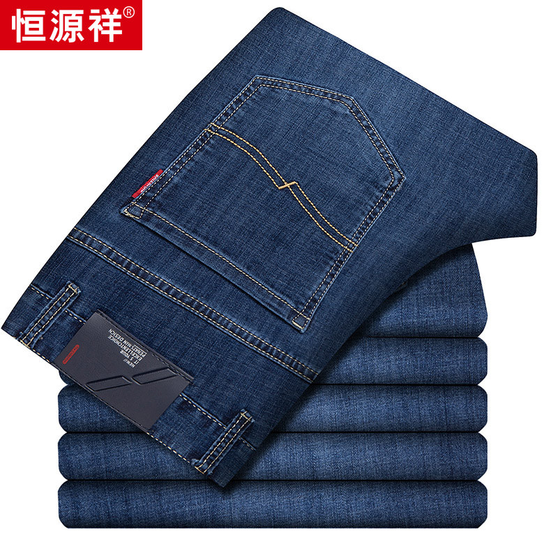 Hengyuanxiang stretch jeans men loose straight summer new middle-aged men's casual pants Dad long pants thin