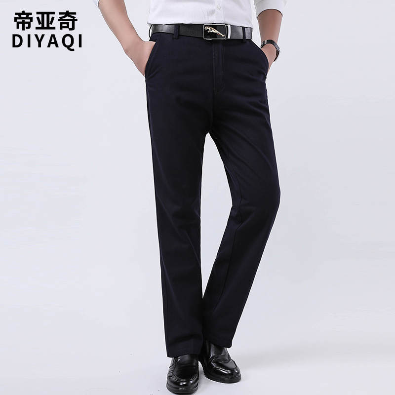 Middle-aged and elderly men's trousers autumn and winter thick plus velvet loose straight casual pants business dad grandpa dress
