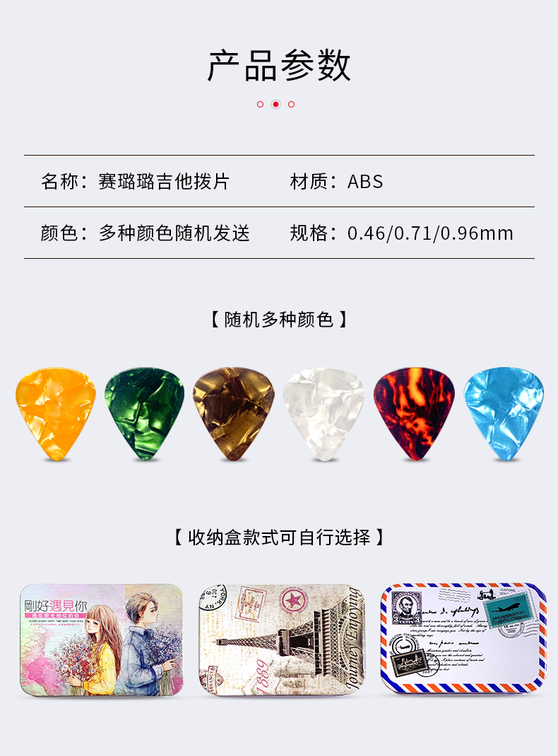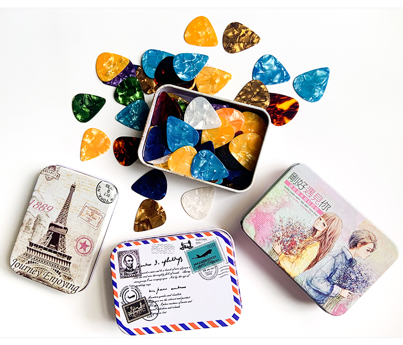 Guitar pick iron box folk song sweep string finger play bakelite guitar color celluloid pluck ukulele paddle