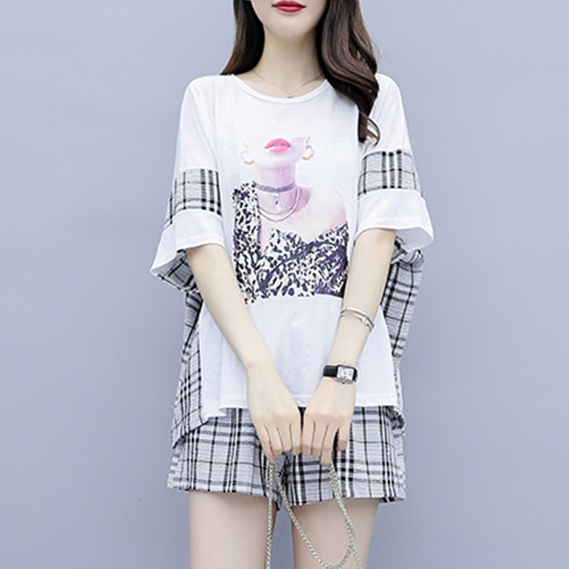 Large size women's clothing 2022 summer new fat mm slimming belly cover suit female casual short-sleeved shorts two-piece set