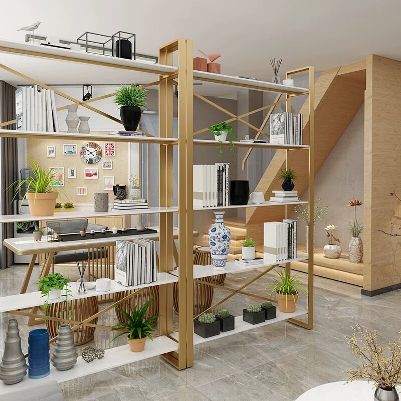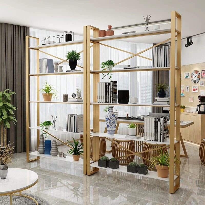 Simple iron art bookshelf landing shelf light luxury cosmetics display shelves living room partition frame solid wood collection shelves