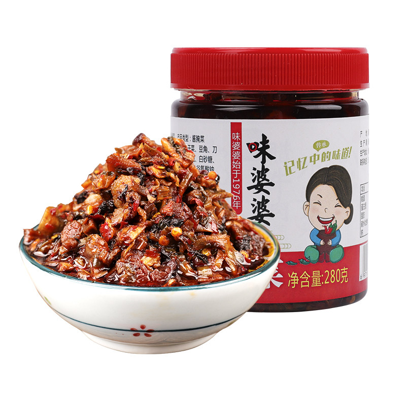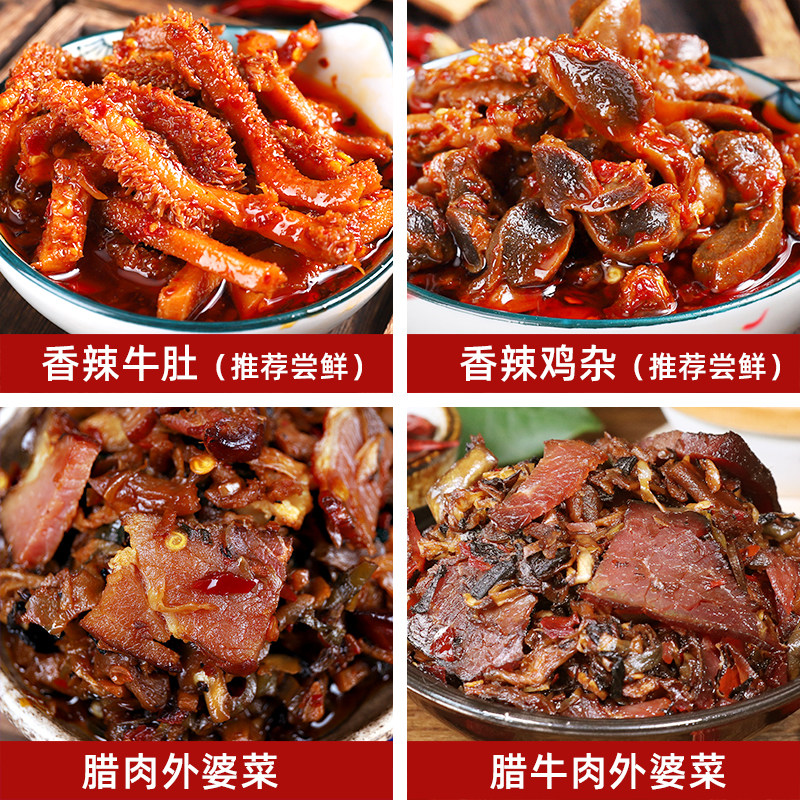 Taste mother-in-law bacon grandmother dishes Hunan specialties homemade prunes and pickles taste stomach pickles and sauces bottled