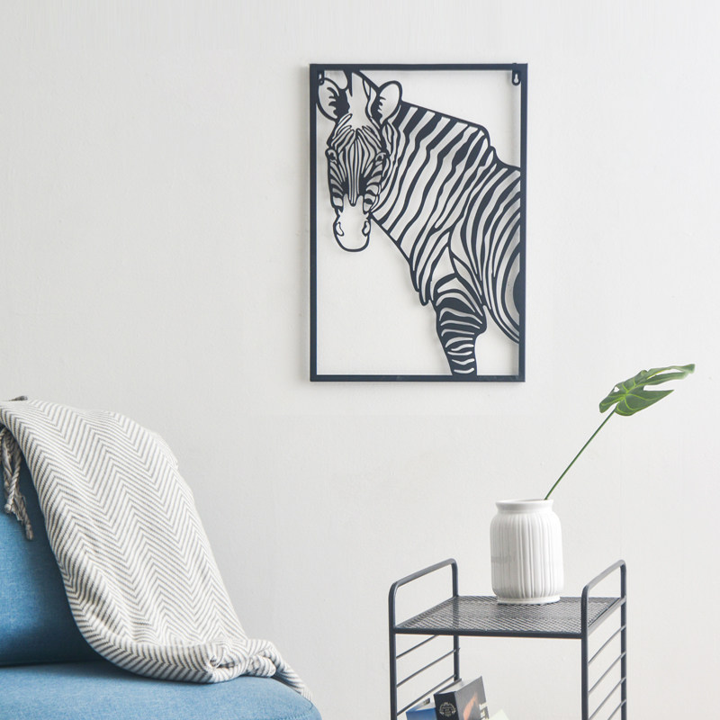 Nordic sofa background wall porch decoration living room wall decoration painting wall hanging creative metal wrought iron zebra painting