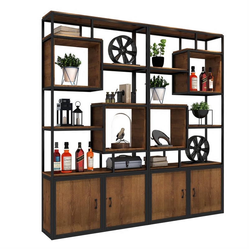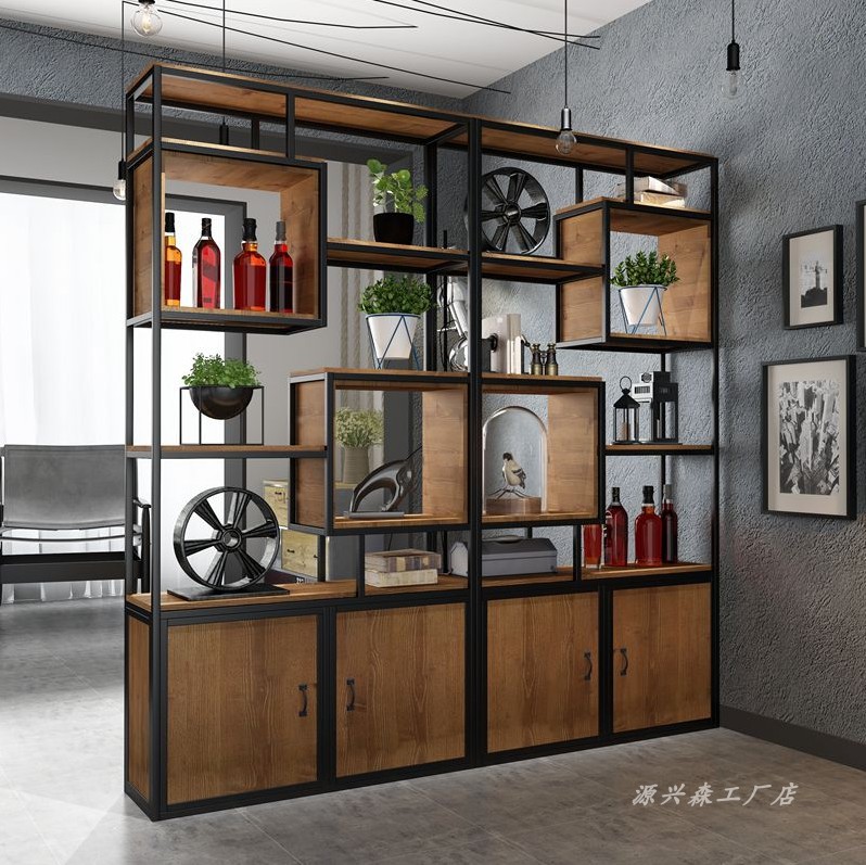 Iron art industrial style shelf living room floor partition office bookshelf storage locker hollow display cabinet