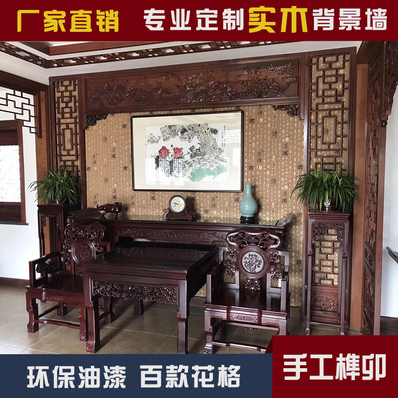 Dongyang wood carving solid wooden flower carving flower window New Chinese porch partition screen door hollow wooden grille