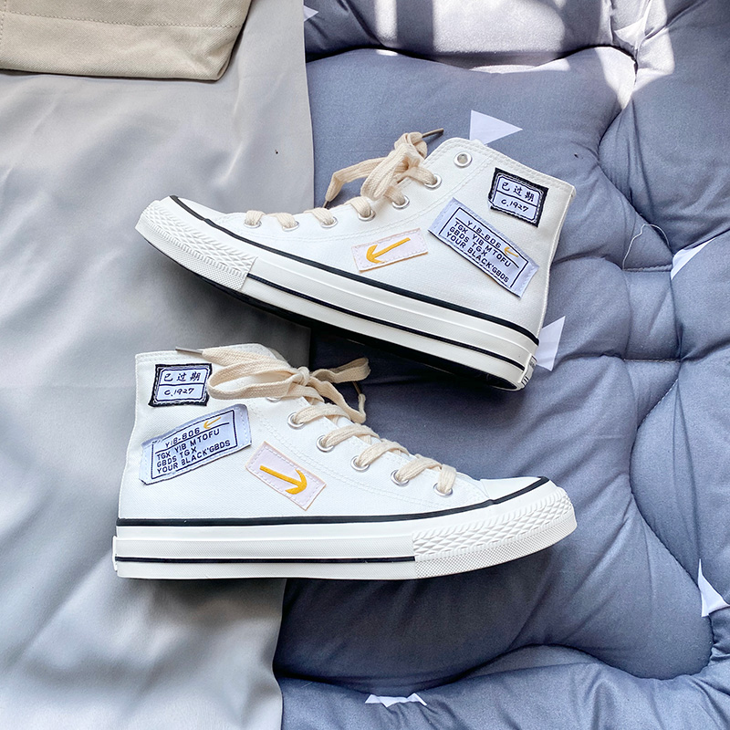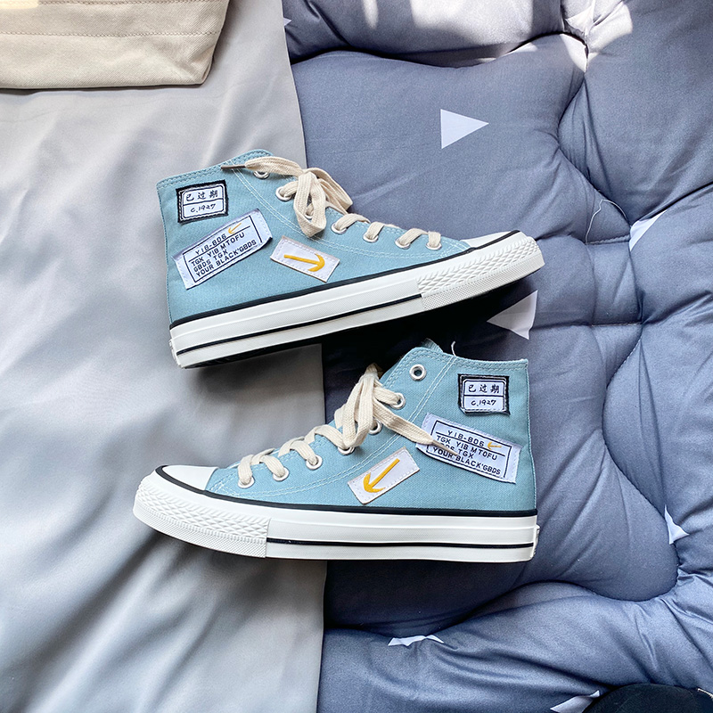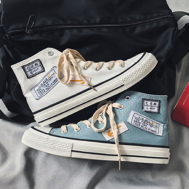 National Tide High Cylinder Sails Shoes Men's Korean Version Trends 100 Hitch Shoes Men's Wave Shoes 2020 New Summer Graffiti Cloth Shoes Men