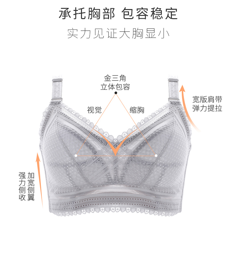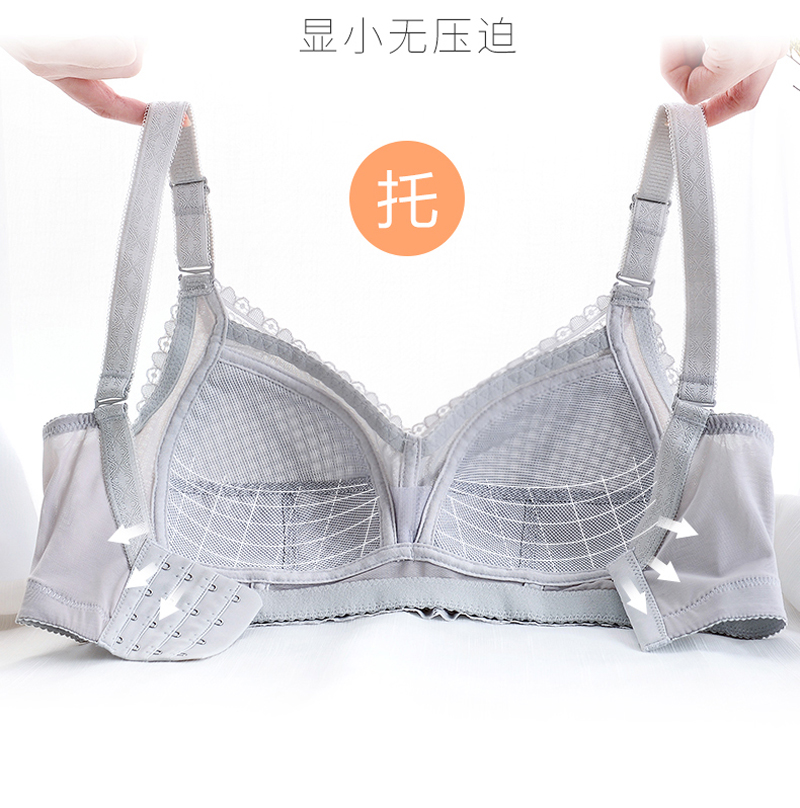 Large code lingerie women no steel ring ultra-thin Summer coalfield adjustment type large chest display small fat mm full cups bra minibreasted-Taobao